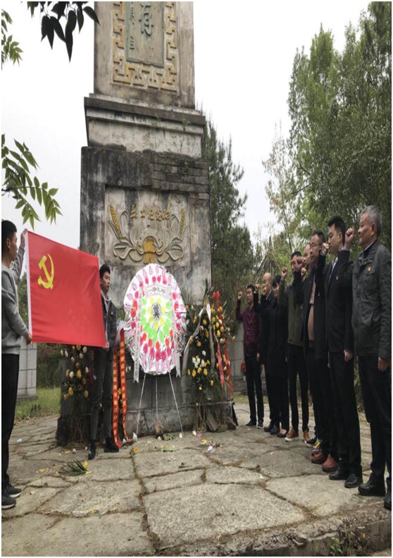 活動(dòng)中,全體黨員在烈士陵園抗日烈士紀(jì)念塔前默哀,敬獻(xiàn)了花圈并行默哀禮,向烈士們表達(dá)了崇敬緬懷之情。同時(shí),黨員們還面對黨旗重溫了入黨誓詞,進(jìn)一步表達(dá)了對黨的信仰與忠誠。