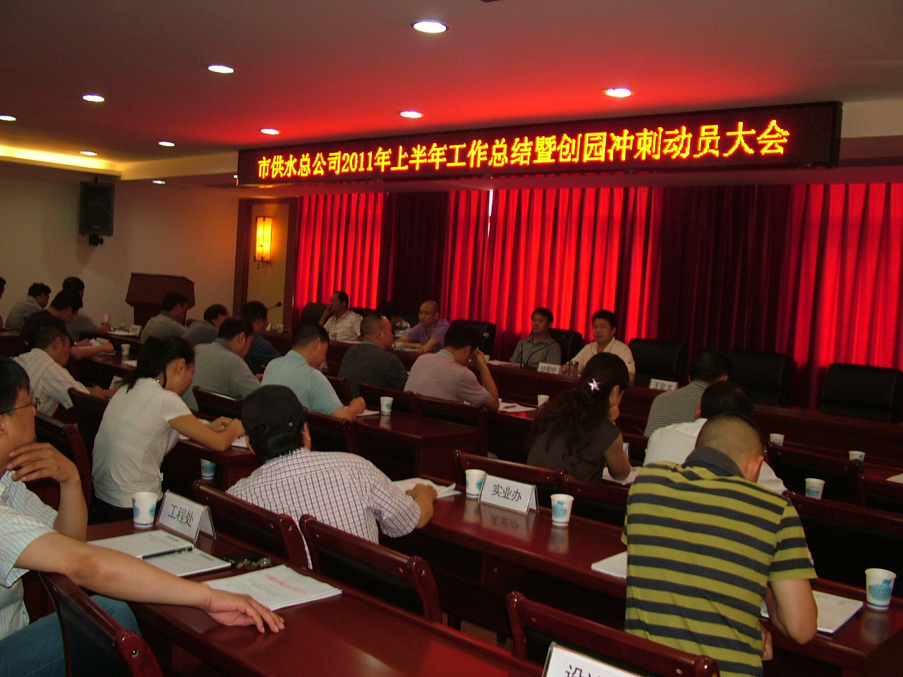 7月6日,市供水總公司在六樓會議室召開2011年上半年工作總結(jié)暨創(chuàng)園沖刺動員大會。公司中層以上干部和全體機關人員參加會議,會議由黨委書記、副總經(jīng)理陳永根主持,會議內(nèi)容豐富而緊湊。黨群辦主任馬兆芳傳達了住建委創(chuàng)園沖刺動員大會精神;陳書記部署了創(chuàng)建國家園林城市工作和人大評議工作;副總經(jīng)理郭林舫部署了安全生產(chǎn)工作;黨委副書記、工會主席徐黎明傳達了綜合整治會議精神;總經(jīng)理陳衛(wèi)國對上半年工作作了總結(jié),對下半年工作作了安排,傳達了市委從嚴管理干部的意見精神,對公司創(chuàng)優(yōu)發(fā)展環(huán)境,整治“庸懶散”專項治理活動進行了動員安排,要求全體干部職工提振精神、腳踏實地、創(chuàng)先爭優(yōu)、統(tǒng)籌兼顧,為出色完成全年目標任務和各項重點工作,推動供水工作上新臺階而努力奮斗!
