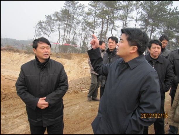 市供水總公司總經(jīng)理陳衛(wèi)國(左一)與掇刀區(qū)常務(wù)副區(qū)長宋鋒(前排右一)在化工循環(huán)產(chǎn)業(yè)園商討園區(qū)建設(shè)用水事宜。