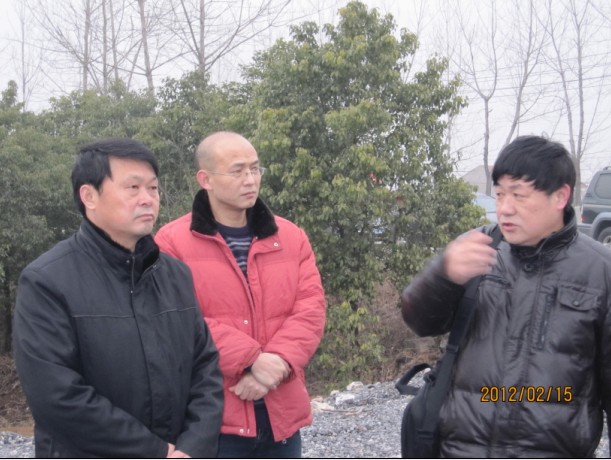荊門市供水總公司總經(jīng)理陳衛(wèi)國(左一)、黨委書記陳永根(左二)到華能荊門熱電聯(lián)產(chǎn)工程工地,聽取該項目負責人介紹工程建設(shè)前期用水需求。