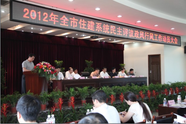 5月17日,市住建委召開全市住建系統(tǒng)民主評議政風行風工作動員大會,市住建委黨委書記、主任楊劍作動員報告,并出臺評議方案。圖為市供水總公司總經(jīng)理陳衛(wèi)國作表態(tài)發(fā)言。