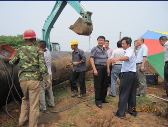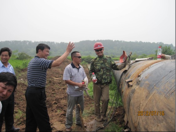 總經(jīng)理陳衛(wèi)國(左四)、黨委書記陳永根(右二)在城區(qū)安全飲水工程施工現(xiàn)場聽取施工負(fù)責(zé)人匯報,要求加快進(jìn)程,確保質(zhì)量,按時完工,向全市人民交上一份合格答卷。