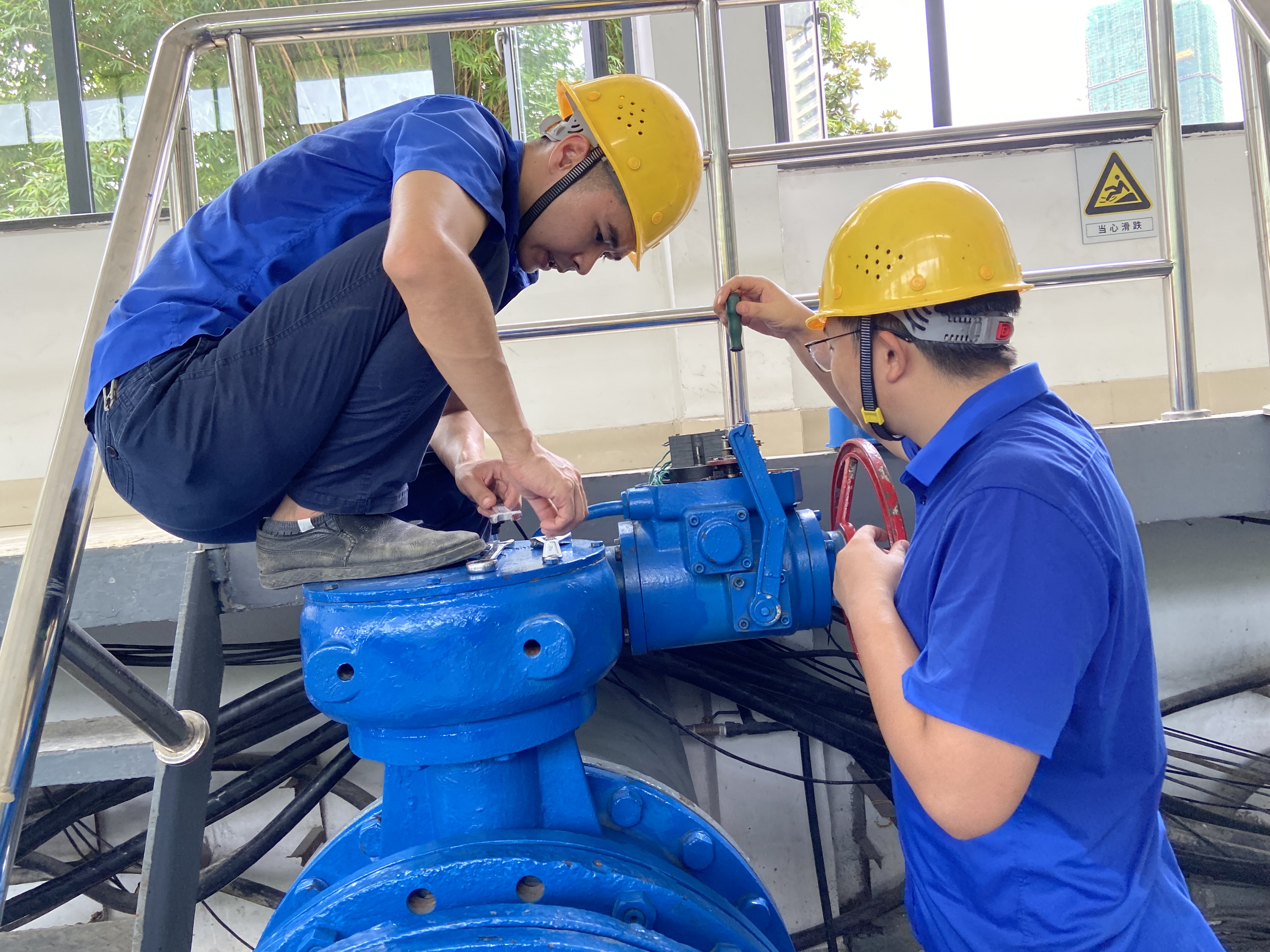 7月16日上午9:00,巡視人員發(fā)現(xiàn)中壓泵房1#機(jī)組閥門無法正常開啟,經(jīng)檢查,發(fā)現(xiàn)閥門控制系統(tǒng)故障,行程過力矩,導(dǎo)致執(zhí)行器外殼破裂,固定軸承損壞。相關(guān)人員立即上報(bào)站長。了解情況后,站長當(dāng)機(jī)立斷,立即部署安排搶修工作。維修人員全員出動(dòng),與時(shí)間賽跑,焊接執(zhí)行器外殼、更換軸承及閥門、較準(zhǔn)行程,在40℃高溫下歷時(shí)近十小時(shí),工作服反復(fù)濕透多遍,終于趕在當(dāng)晚19:00完成了任務(wù),最大程度減少了對(duì)用戶生活帶來的不便。
