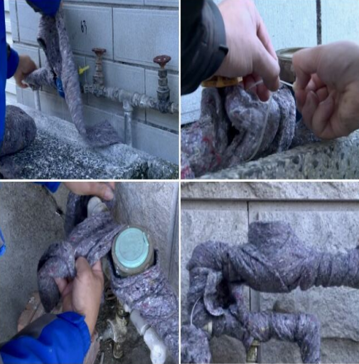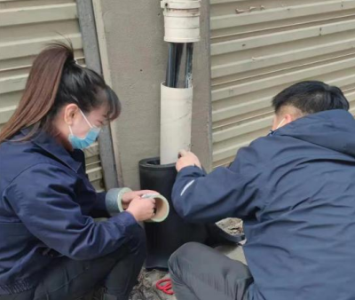 集團(tuán)及時(shí)更新匯總表務(wù)相關(guān)信息,安排專人對(duì)容易上凍或保溫材料缺失的裸露管道、高層小區(qū)管道井上下隔層空隙處加塞保溫棉,防止因樓層串風(fēng)或漏水造成冰凍的損失。同時(shí),我們?cè)跇堑来皯?、消防門等設(shè)施處張貼“隨手關(guān)閉”提示語(yǔ),提醒用戶養(yǎng)成隨手關(guān)門窗的習(xí)慣,進(jìn)一步預(yù)防冰凍情況發(fā)生。