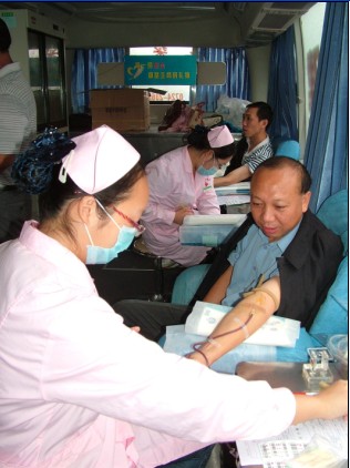 荊門市供水總公司熱心公益事業(yè),積極和荊門市中心血站聯(lián)系,組織發(fā)動(dòng)職工志愿者義務(wù)獻(xiàn)血。圖為公司職工在流動(dòng)獻(xiàn)血車上獻(xiàn)血。