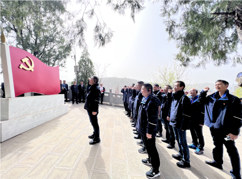 寶塔山頂,集團(tuán)黨委委員、紀(jì)委書(shū)記劉高軼帶領(lǐng)大家重溫入黨誓詞,牢記初心使命。