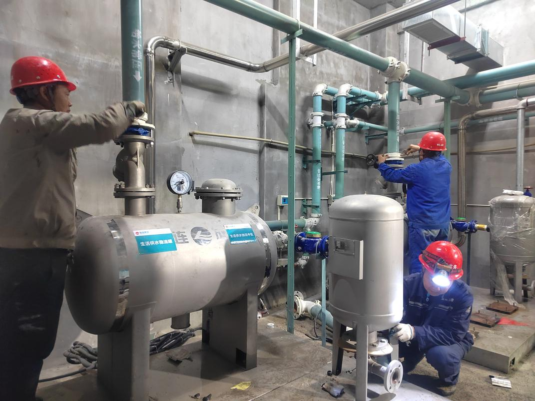 圖為工作人員對(duì)明月小區(qū)泵房進(jìn)行改造