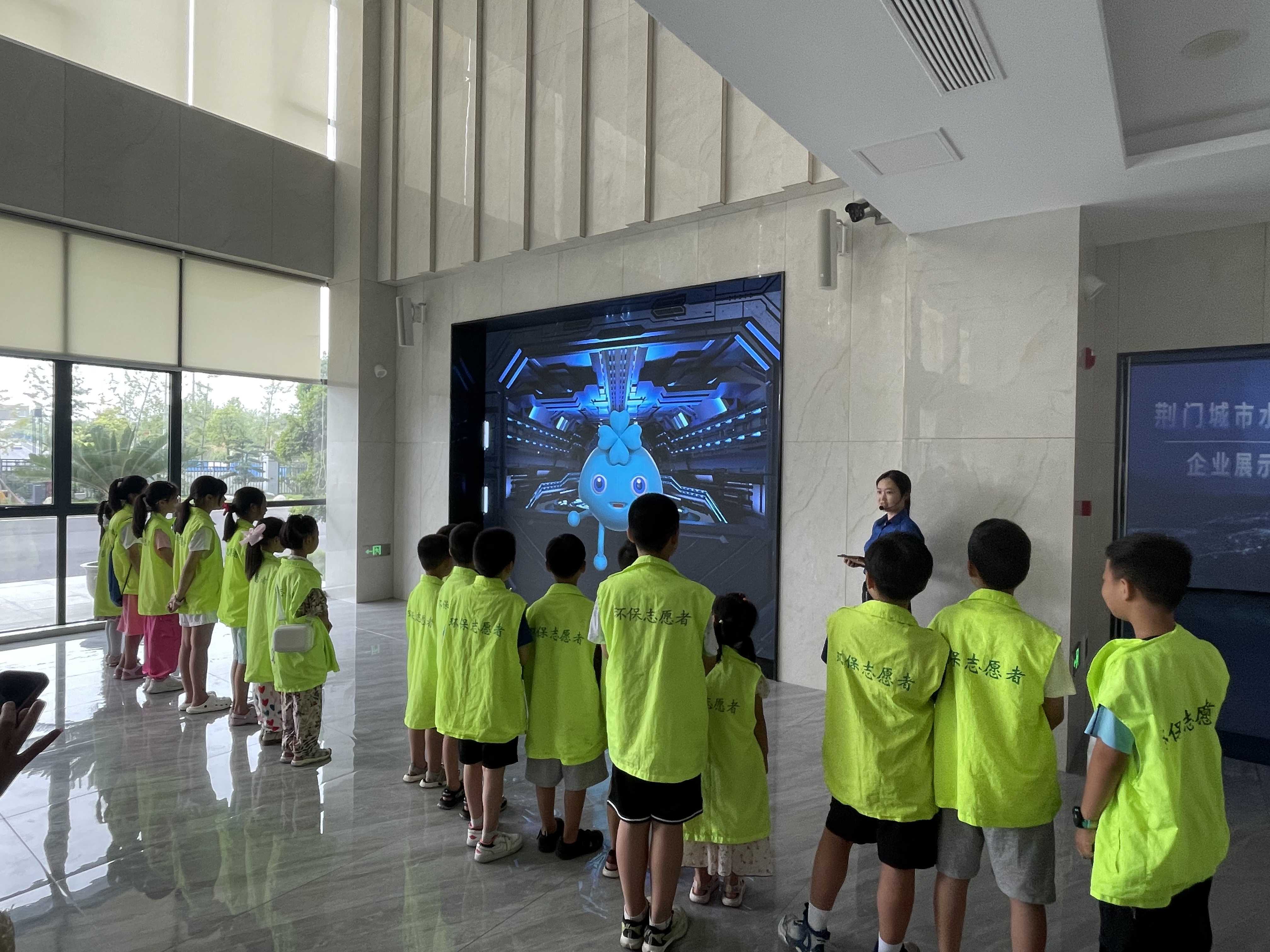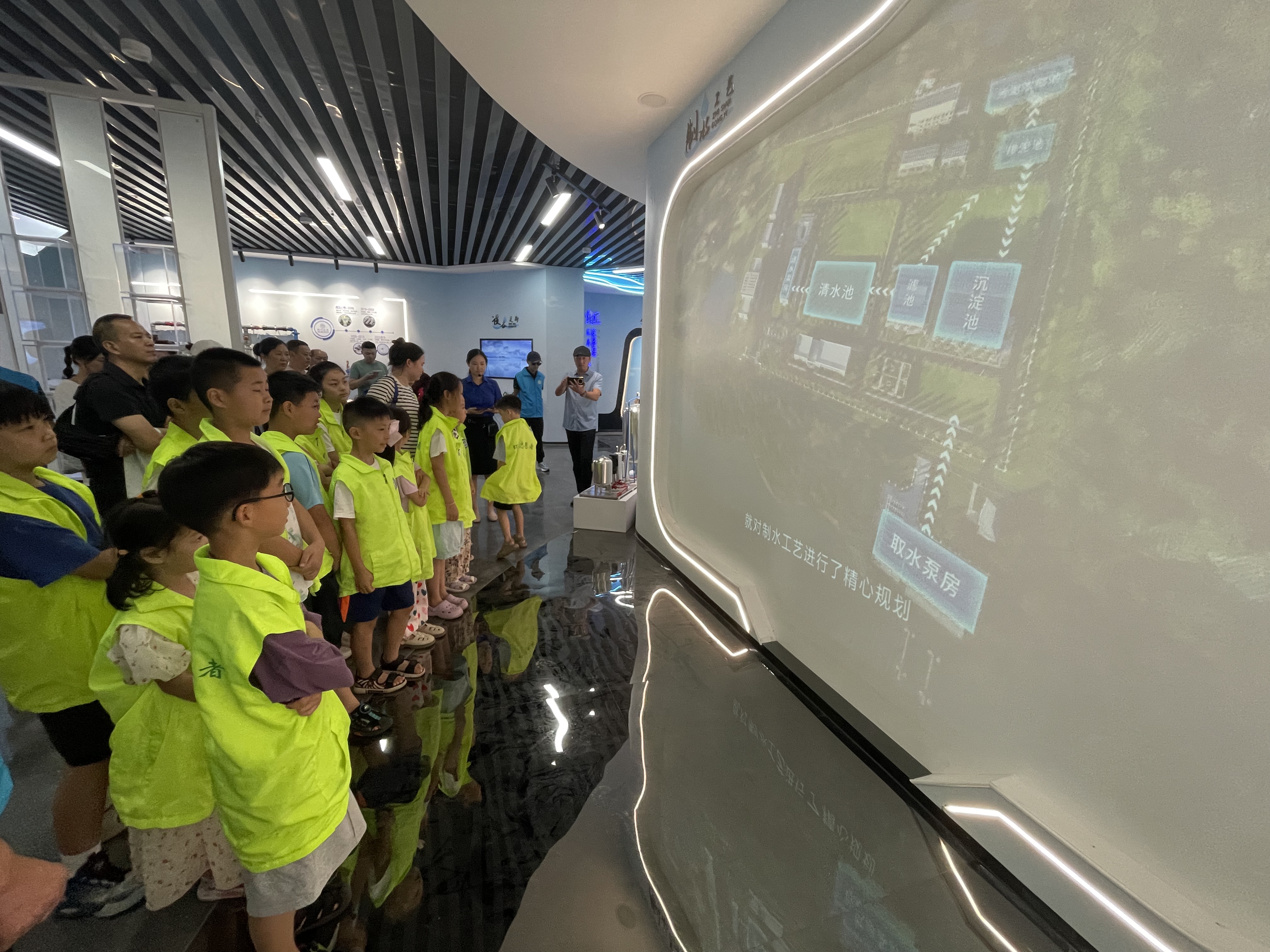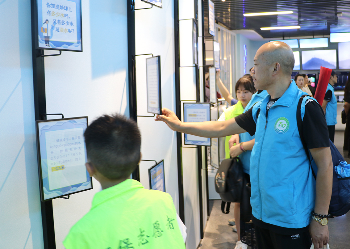 圖為環(huán)保志愿者參觀水務(wù)集團智慧展廳