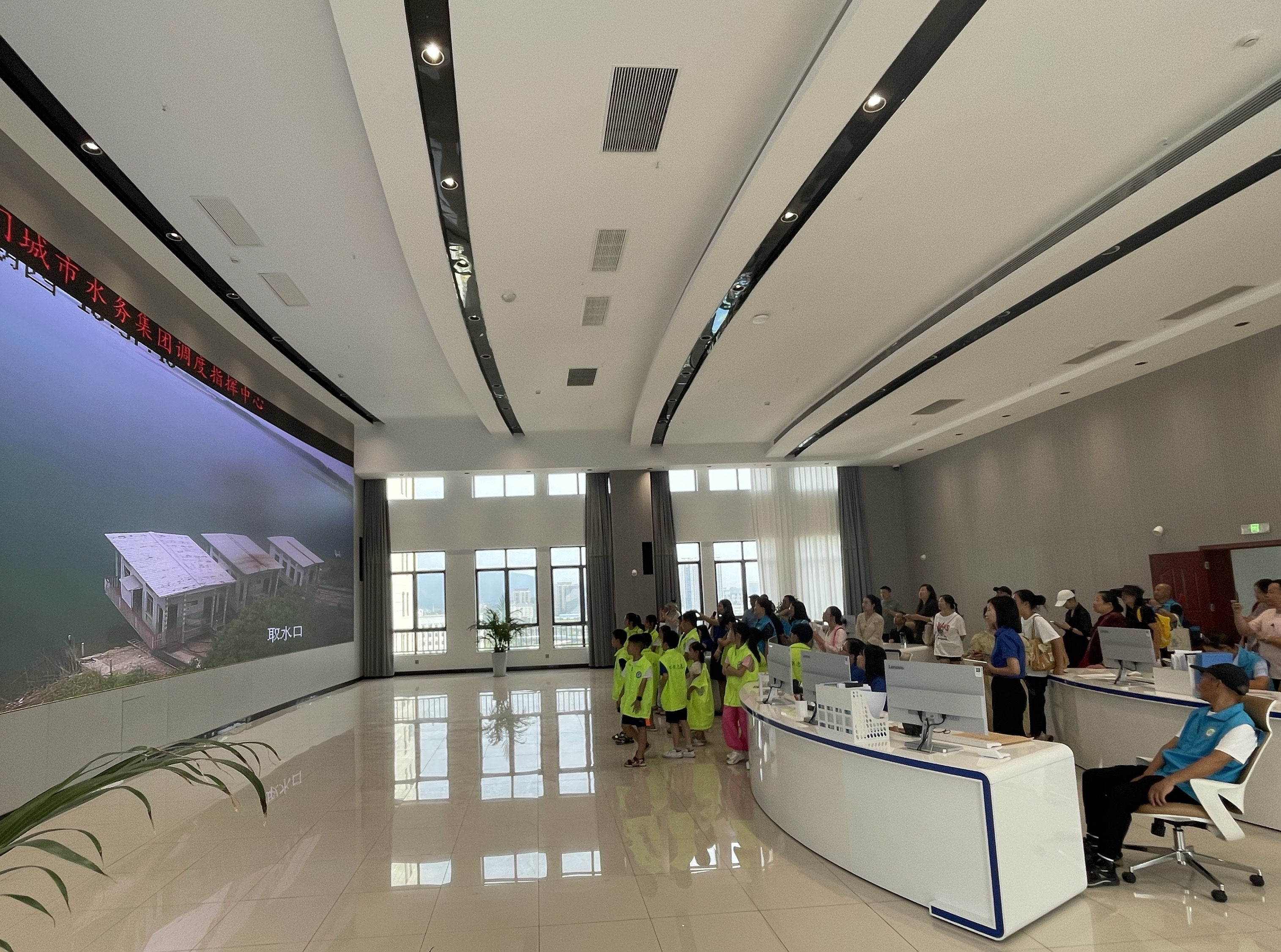 圖為環(huán)保志愿者參觀水務(wù)集團調(diào)度指揮中心