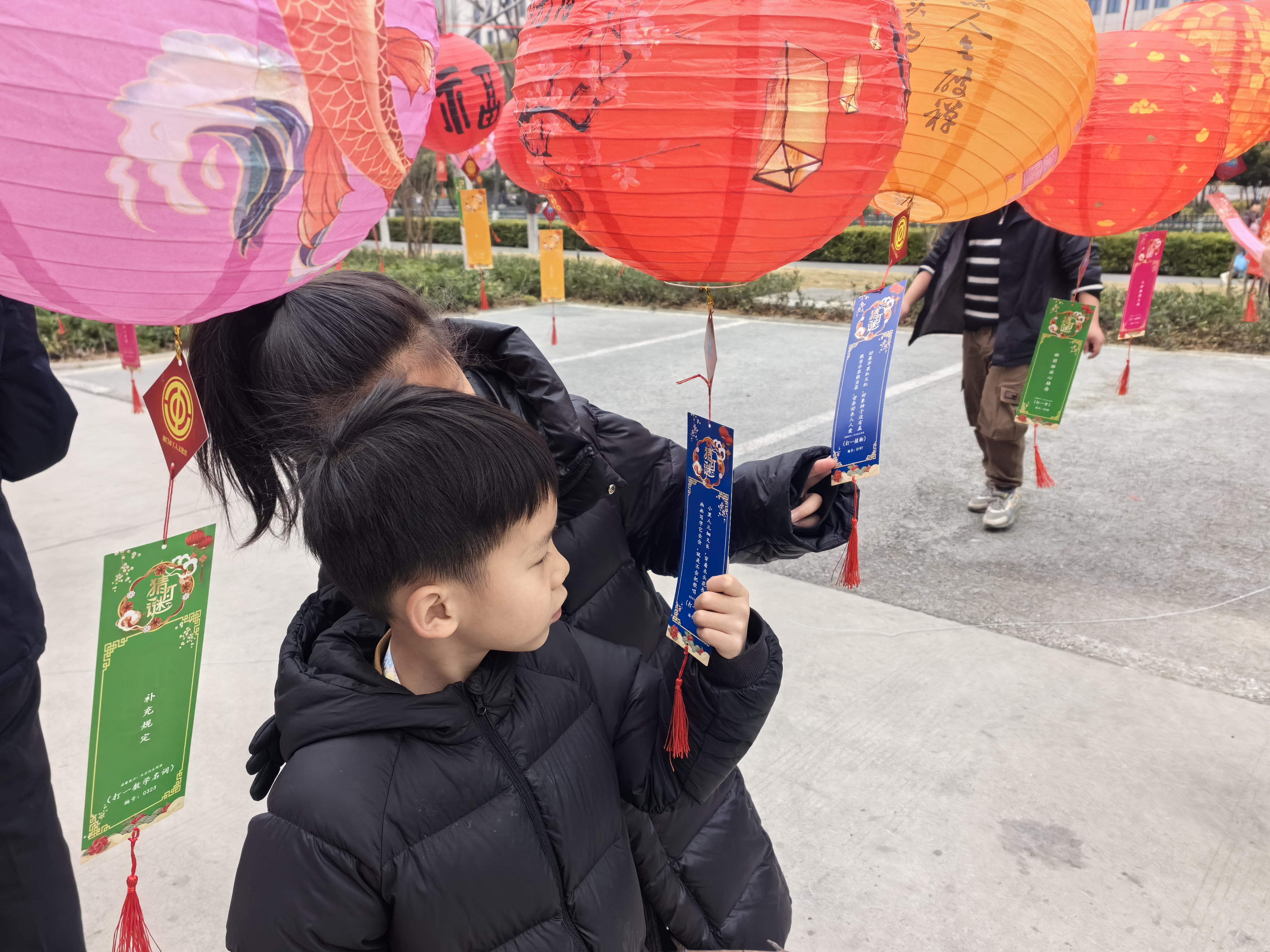 活動(dòng)現(xiàn)場(chǎng),燈籠高懸,五彩絢麗,宛如繁星點(diǎn)綴。每個(gè)燈籠下,精心設(shè)計(jì)的燈謎隨風(fēng)輕搖,內(nèi)容涵蓋歷史文化、生活常識(shí)、成語(yǔ)典故以及水務(wù)知識(shí)等多個(gè)領(lǐng)域,兼顧趣味與知識(shí),吸引了眾多市民駐足參與。大家或低頭沉思,或相互討論,現(xiàn)場(chǎng)歡聲笑語(yǔ)不斷,洋溢著濃濃的節(jié)日氛圍。
