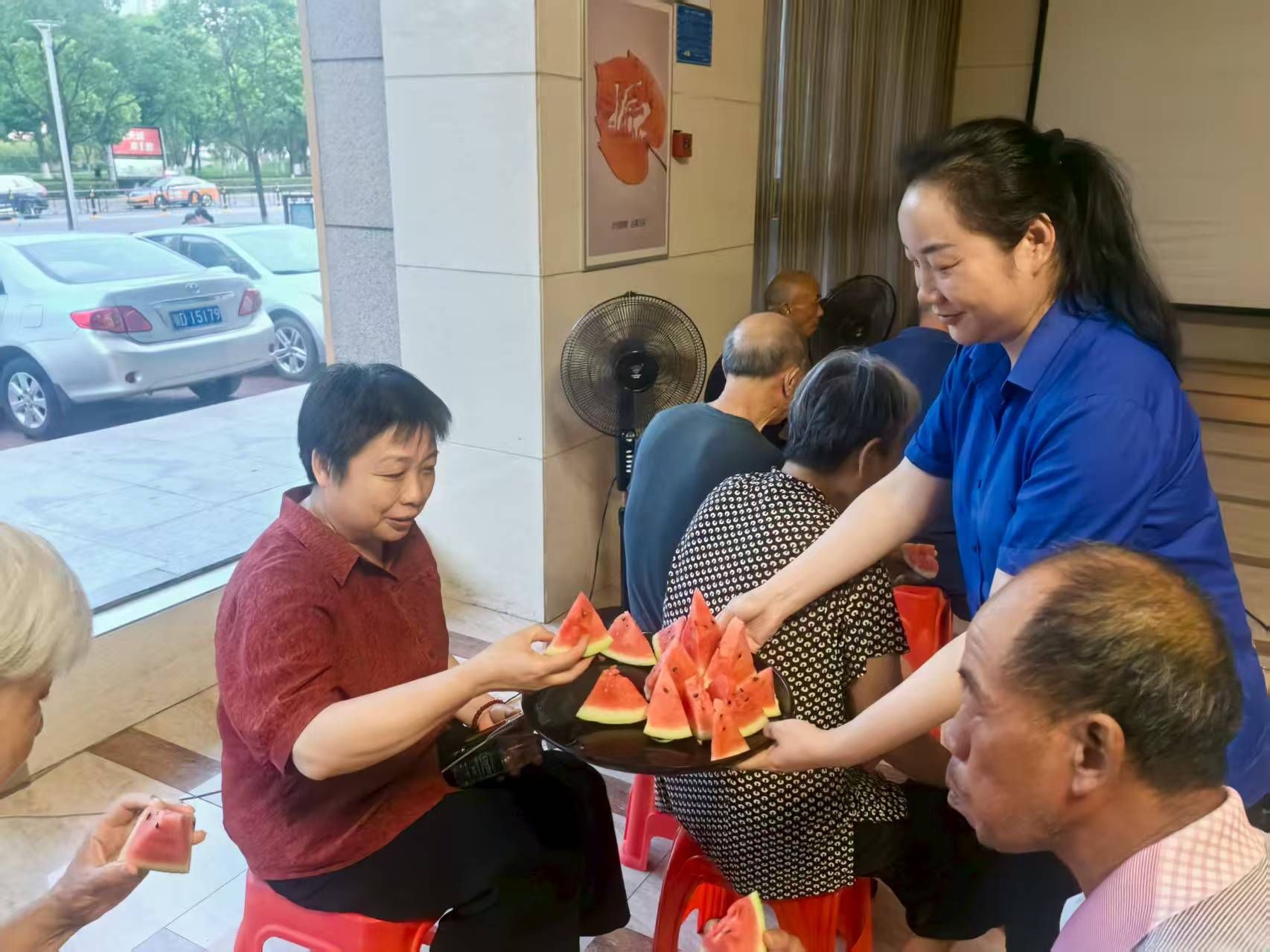 活動(dòng)尚未開(kāi)始,入口處已是一派熱鬧景象。物業(yè)工作人員早早備好冰鎮(zhèn)綠豆湯、清甜西瓜與礦泉水,為陸續(xù)到場(chǎng)的居民遞上夏日清涼。趁居民就座間隙,工作人員結(jié)合案例,生動(dòng)講解消防隱患排查、電信詐騙防范等實(shí)用知識(shí),“手把手”教大家識(shí)別騙局、掌握逃生技巧,在輕松互動(dòng)中筑牢社區(qū)安全防線。