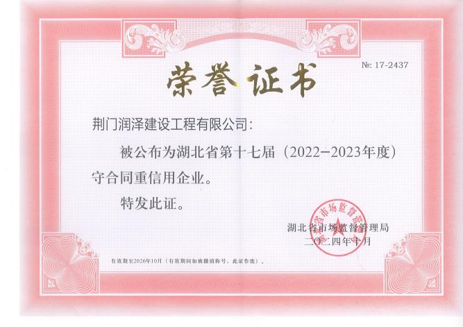 憑著“誠(chéng)信為本、質(zhì)量為根”的堅(jiān)守,潤(rùn)澤公司連續(xù)兩年獲評(píng)荊門(mén)市和湖北?。?022-2023年度)“守合同重信用企業(yè)”,市場(chǎng)競(jìng)爭(zhēng)力和品牌影響力持續(xù)攀升。
