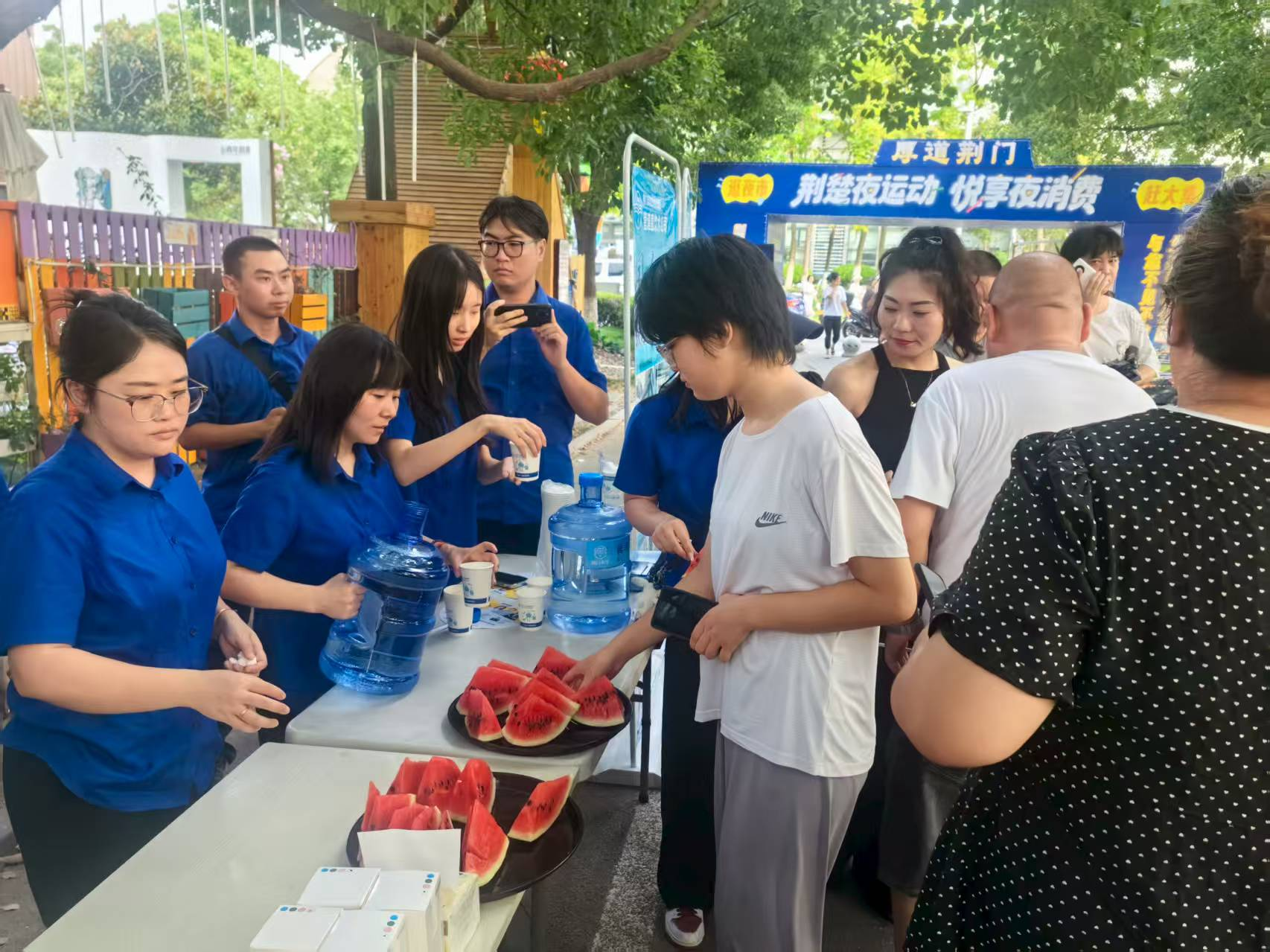 7月29日晚,市水務(wù)集團(tuán)慧泉房產(chǎn)公司攜手龍泉直飲水公司,帶著清涼好禮,結(jié)伴奔赴生態(tài)運(yùn)動(dòng)公園“逛夜市,趕大集”。