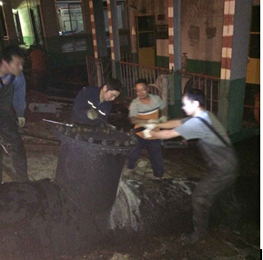 截止到7月1日晚,由于漳河水庫上游的南漳縣南部普降暴雨,水位暴漲,持續(xù)了近一個月的116.80米漳河水位,已達117.5米。取水臺車安全高度已達到警戒線。二水廠連夜組織職工下水往上拉取水臺車,確保供水設(shè)施安全運行,保障城市正常供水。