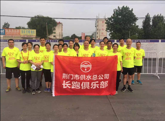 5月2日上午,荊門市供水總公司長跑俱樂部24名職工組成的長跑團(tuán)隊(duì)在“愛飛客”2016荊門國際馬拉松賽場一展風(fēng)采。
