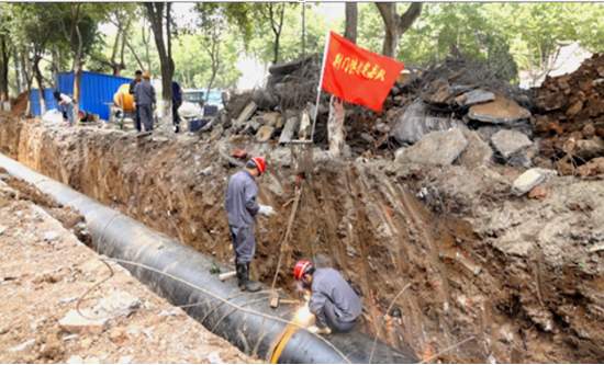 四條道路供水管線遷改工程時間緊、任務(wù)重,且施工難度大。由于道路施工工期緊張,施工單位都在全力趕工期,因此5月后進(jìn)入到管線遷改工作的白熱化階段。維修處全體干部職工充滿信心,全力以赴,不辱使命,挑戰(zhàn)自我。全體施工人員克服重重困難,采取“白+黑”、“5+2”連軸轉(zhuǎn)不停歇的工作模式,加班加點(diǎn),在保證安全質(zhì)量的前提下,加快施工進(jìn)度,確保四條道路管道遷移改造工作快速推進(jìn),圓滿完成總公司和工程建設(shè)指揮部下達(dá)的各項工作任務(wù)。