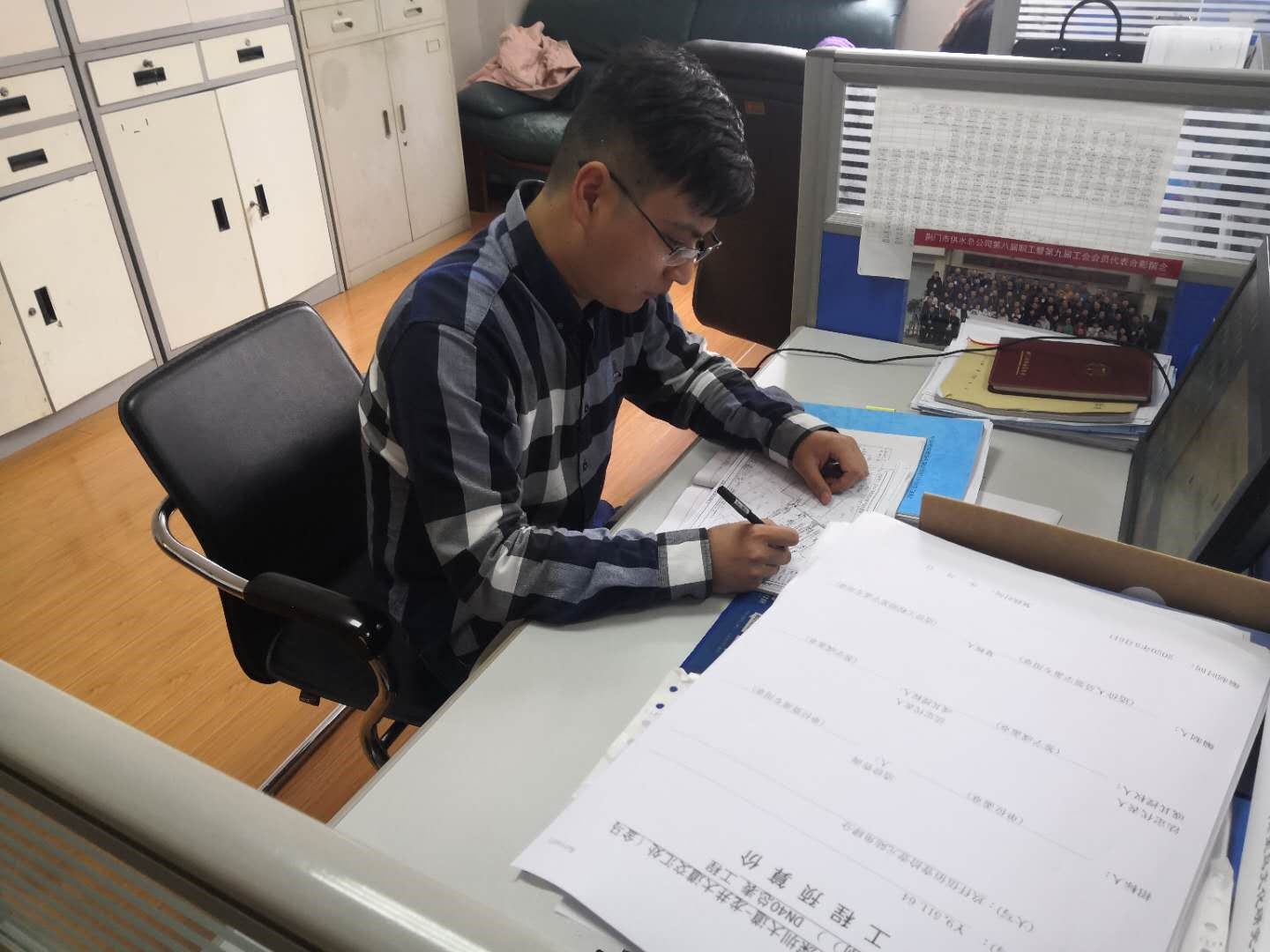 劉貝的主要工作是用戶報裝接待、現(xiàn)場勘察、圖紙預(yù)算審核傳遞、工程合同擬定、下發(fā)施工通知單、客戶咨詢等。2019年,他共受理用戶現(xiàn)場勘察約700起,平均每周約15起,勘察范圍西至宏圖愛飛客小鎮(zhèn)、東至彭墩長壽產(chǎn)業(yè)園、南至團林汽車工業(yè)園、北至子陵萬華工業(yè)園等,全年共擬定各類大小合同約340份,下發(fā)各類施工通知單約500份,從未受到用戶投訴。
