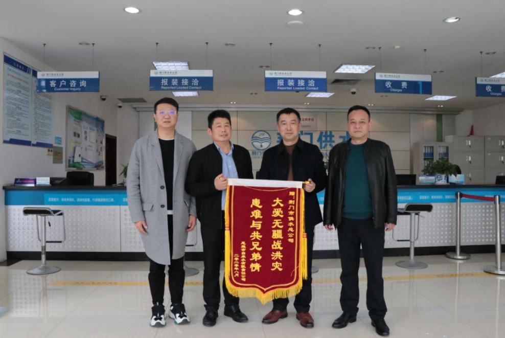 11月20日上午,恩施市自來(lái)水公司總經(jīng)理袁進(jìn)一行6人專程趕到荊門,向市供水總公司在恩施遭遇五十年一遇特大洪澇災(zāi)害的危難時(shí)刻給予傾情付出和無(wú)私幫助表示感謝,并贈(zèng)送寫有“大愛無(wú)疆戰(zhàn)洪災(zāi) 患難與共兄弟情”的錦旗。
